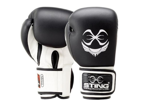 Sting Boxing Titan Leather Training Gloves Black White Velcro The Boxing Corner
